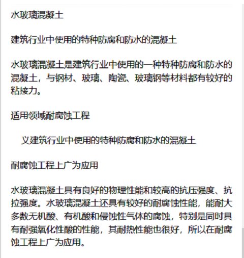 产品水玻璃混凝土