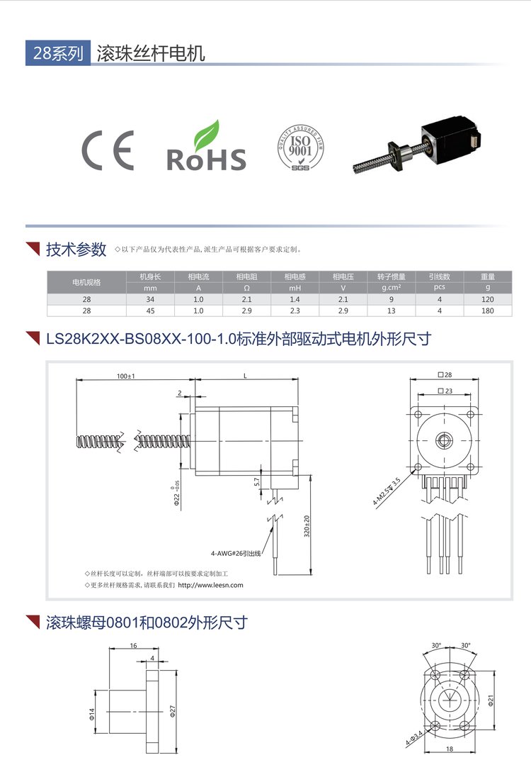 电动机名称 | 28滚珠丝杆电机 | ||