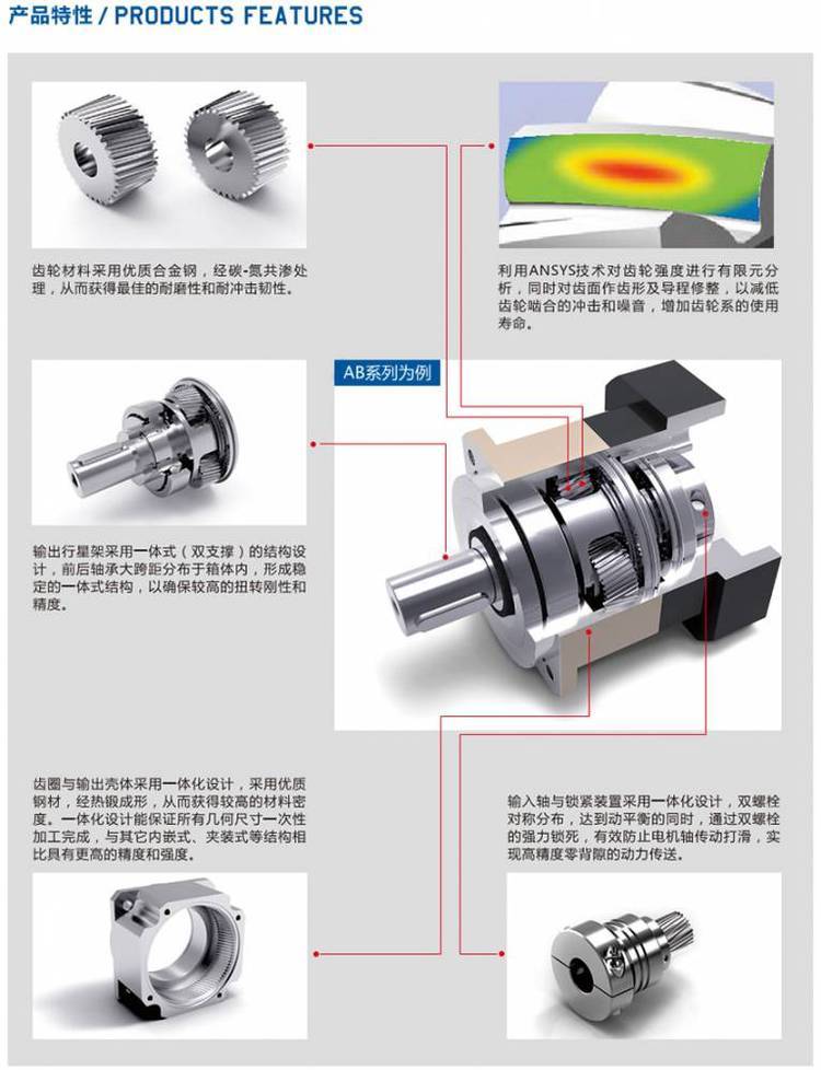 7、减速比高:采用模块化设计,行星齿箱可相互连结,速比可达1/1000以上;?