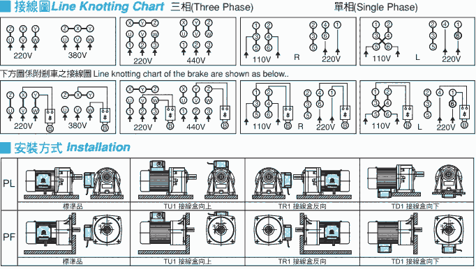 台湾东力电机PF18-0200-20S3B-1X-TD3由电机,减速机,接线盒,风扇四部分组成。出力轴为18MM,输出功率100W,1;20减速比,三相380V采用变频线圈的立式带刹车减速电机。