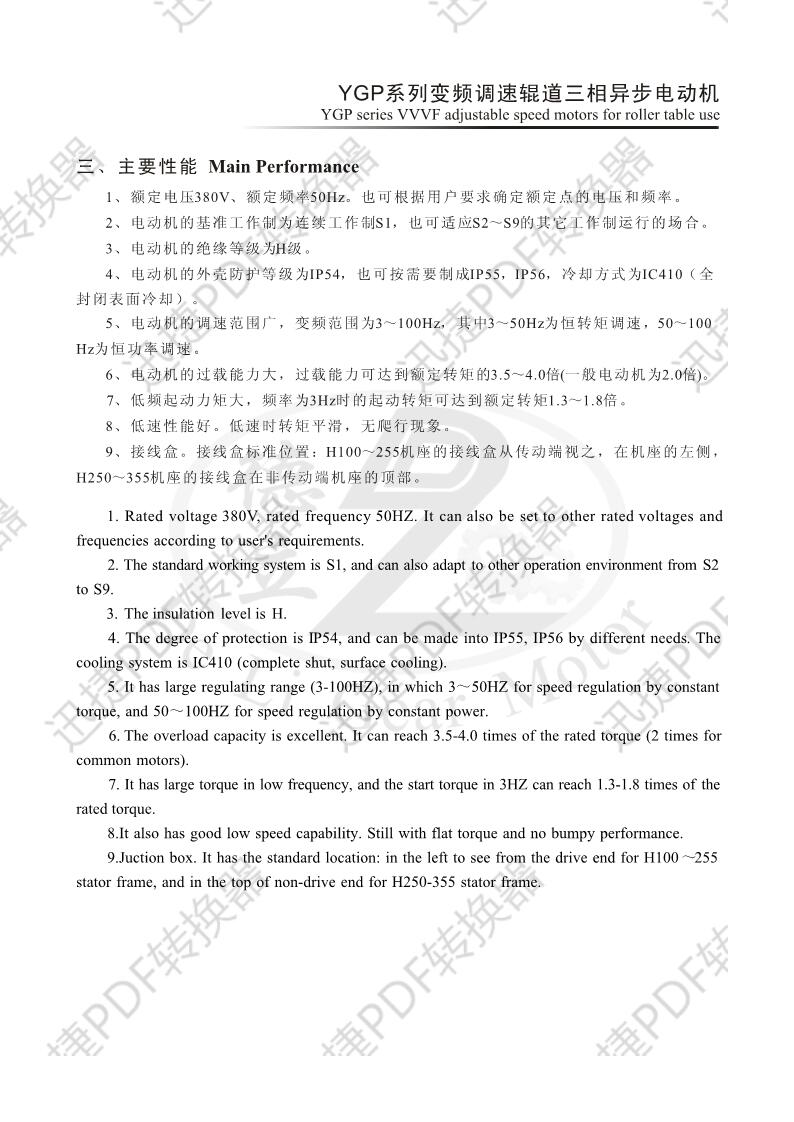 德立卧式辊道传输变频调速电机三相异步辊道电动机YGP200L-6-18.5