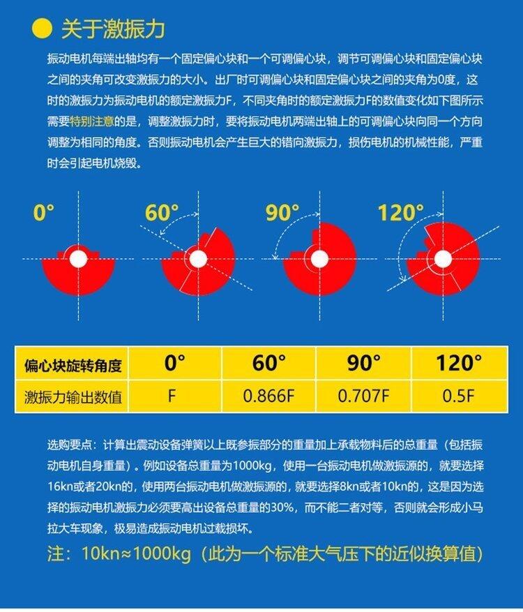 5、只需调节偏心块夹角,就可实现无级调整激振力。