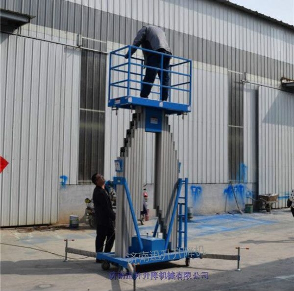 双立柱铝合金升降机:全新设计的新一代产品,整体采用高强度铝型材精制而成由于型材强度高,使升降台的偏转与摆动极小。采用双桅柱式结构,载重量大,平台面大,稳定性极好,运转灵活,推行方便。它轻盈的外观,能在极小的空间内发挥理想的举升能力。该升降机广泛用于厂房、宾馆、大厦、商场、车站、机场、体育场等。可用作电力线路、照明电器、高架管道等安装维护,高空清洁等单人工作的高空作业。