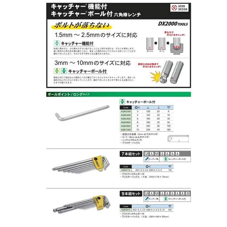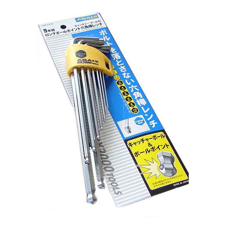 ASAHI旭金属 超强合金钢/长球头六角扳手 AQKS910 9 件套 品牌 | ASAHI旭金属 | ||