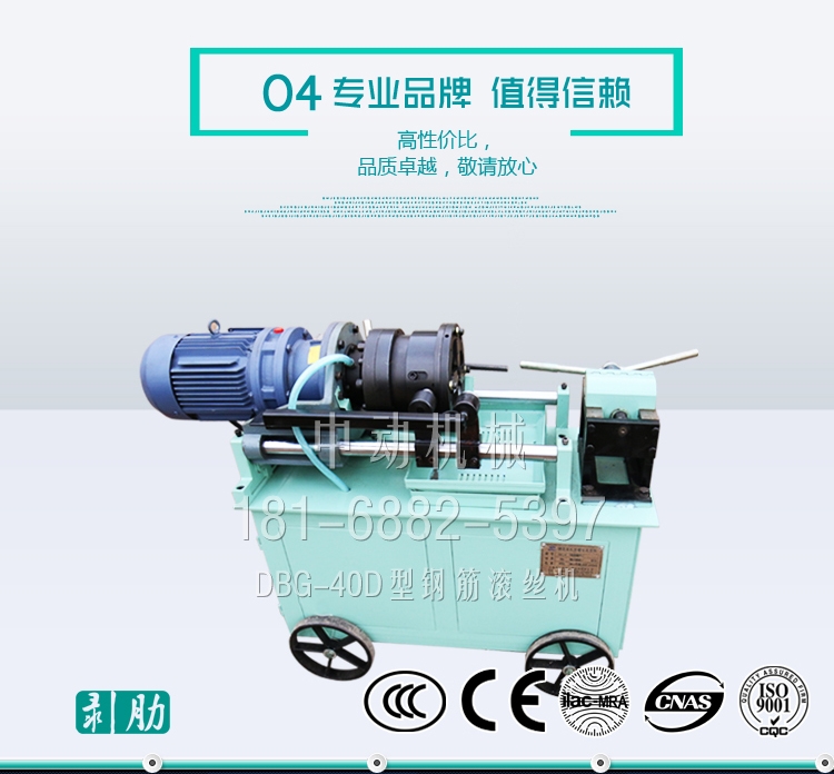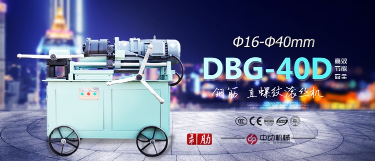 中动DBG-40D型钢筋剥肋滚轧直螺纹机床主要用于建筑工程带肋钢筋滚轧直螺纹丝头加工,是实现钢筋连接的关键设备,可加工φ16—φ40mm的HRB335、HRB400、HRB500及HRB600级带肋钢筋。