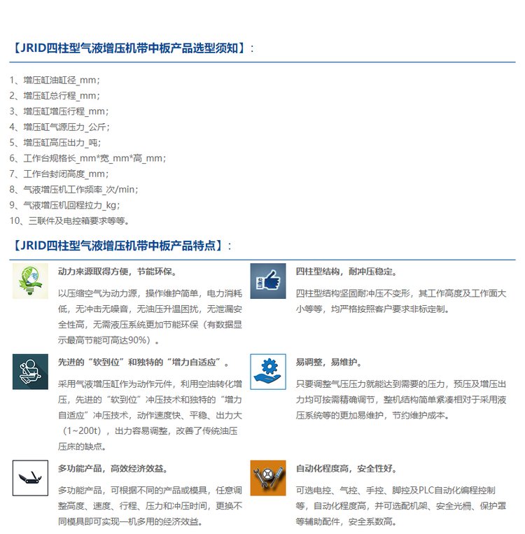 JRID四柱型气液增压机带中板非标定制客户至上