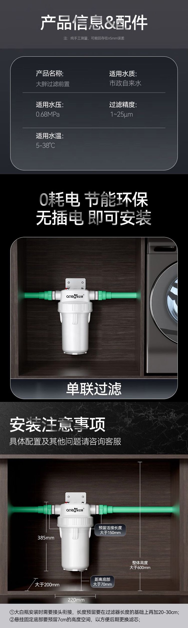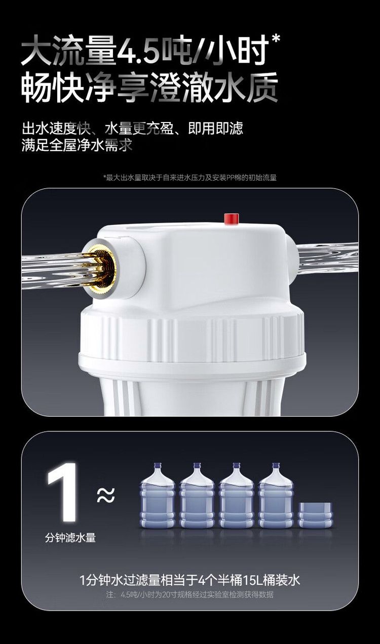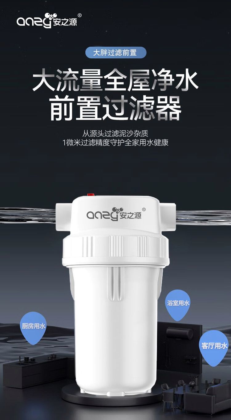 安之源10寸全屋家用自来水过滤大通量中央过滤通用滤芯除余氯阻垢大白瓶前置过滤器