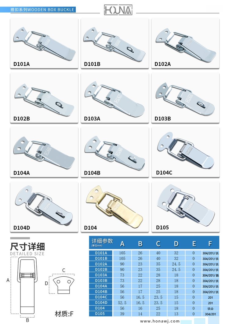 苏州华纳机电有限公司作为一家经营多年的箱类配件厂家,是国内一家研发与生产箱类五金配件公司,主要生产蝴蝶锁扣、搭扣、拉手、包角、木箱整套配件等等,箱类五金配件为主体的品牌。专注为客户提供箱类解决方案;不断提供配套产品。品牌有五大产品——蝴蝶箱扣、搭扣、包角、合页以及拉手。