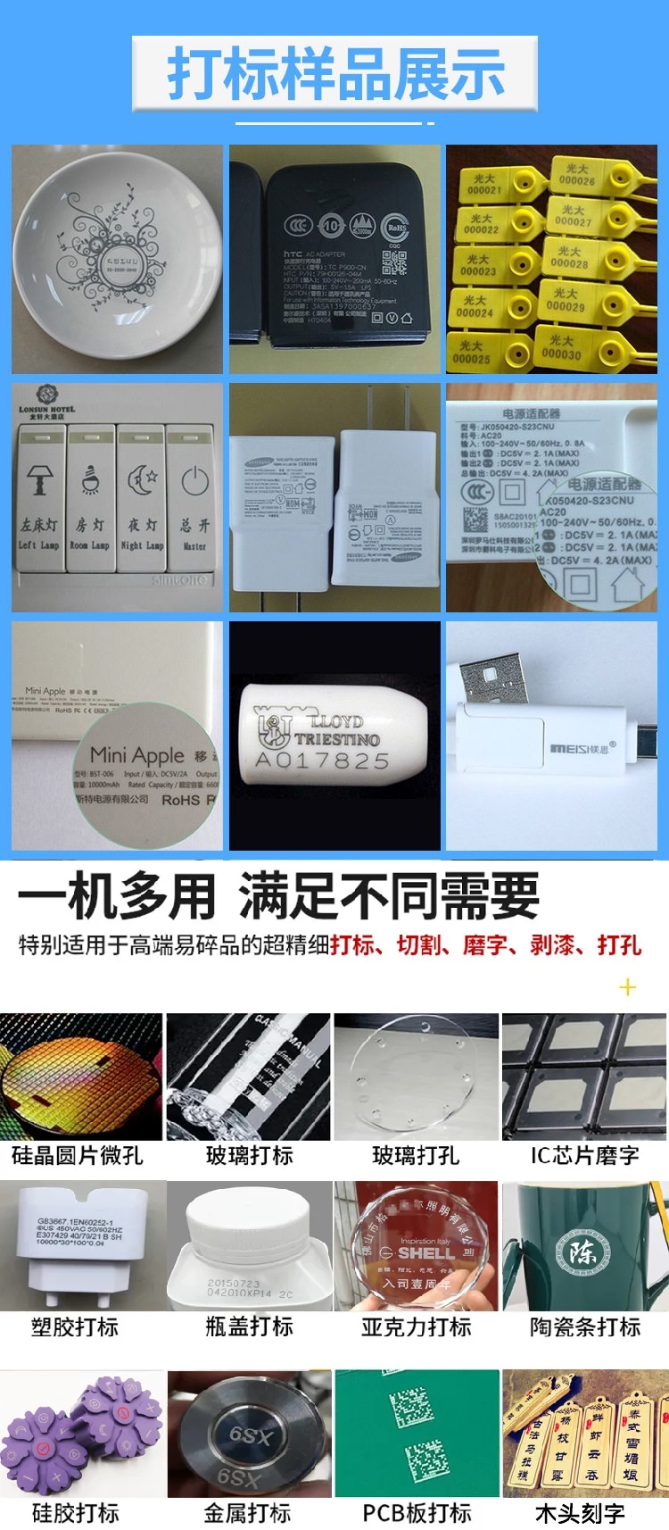 用途范围 | 金属或塑胶精细打标 | ||