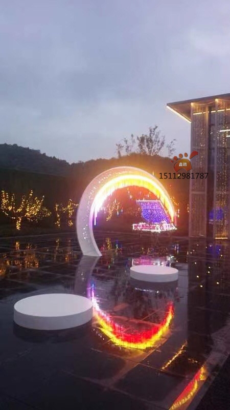 发光月亮不锈钢雕塑、园林艺术雕塑夜间效果印象满分