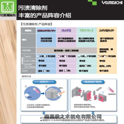 A 、 精细 化工系列:国内唯一总代理日本山一化学 (YAMAICHI) 模具清洗剂防锈剂脱模剂高温润滑油;日本复合资材离型剂防锈剂系列、日本中京化成模具清洗剂防锈剂脱模剂高温润滑油,美国 CRC 防锈剂润滑剂电器清洁剂系列、美国 Klap 奇乐模具清洗剂防锈剂润滑剂、美国LPS工业化工助剂,日本住矿( SUMICO )防锈 润滑剂清洗剂系列;摩力克 MOLYKOTE 润滑油系列;乐泰 Loctite 胶粘剂;日本小西( KONISHI )胶水 。