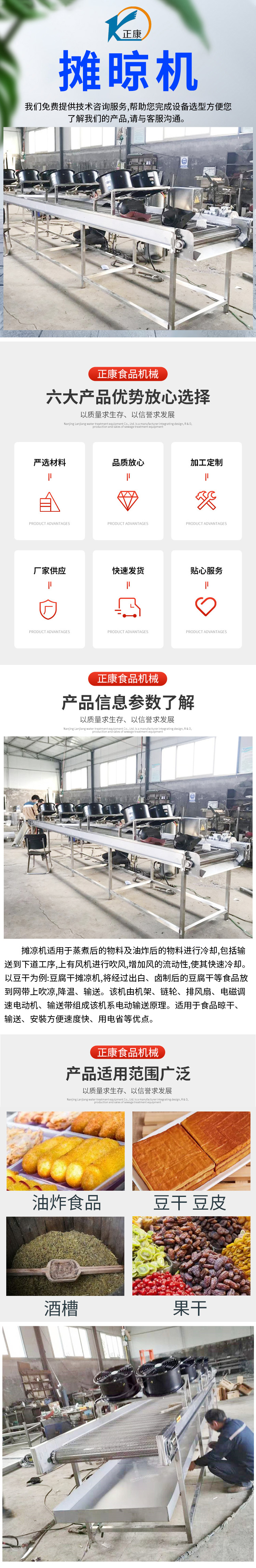正康豆干摊晾机油炸食品快速吹凉摊凉机连续式风干机
