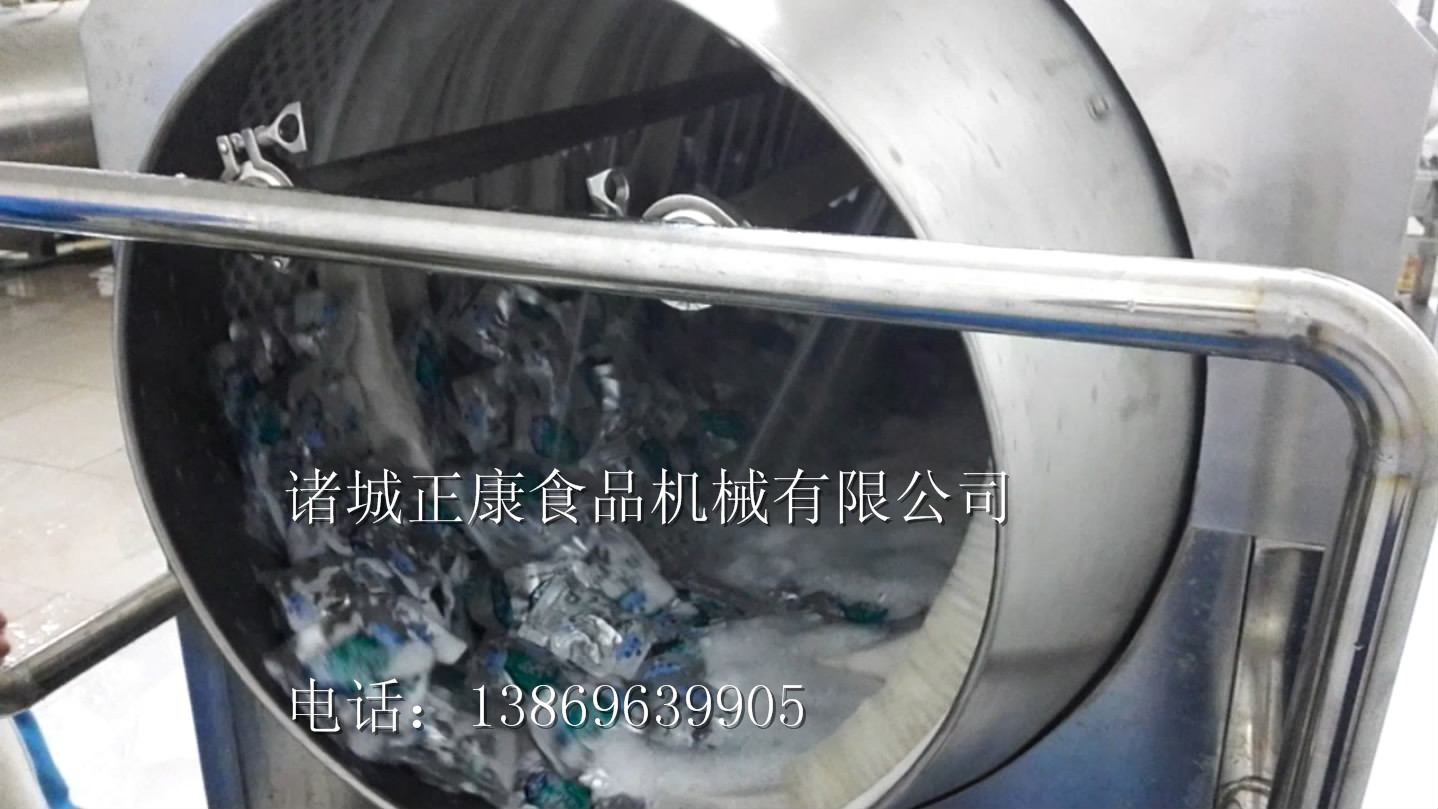 食品由于经过包装、杀菌后外包装袋上会有油污,为了方便去除,我公司根据产品的不同要求特研制出新型洗袋机,酱菜包洗袋机该产品能一次性将油污去除干净。该机整体使用优质不锈钢加工制作,内设螺旋毛刷系统、循环水喷淋系统、净水喷淋系统,污水及杂质水箱过滤后可循环利用,充分利用水源,节省生产成本。