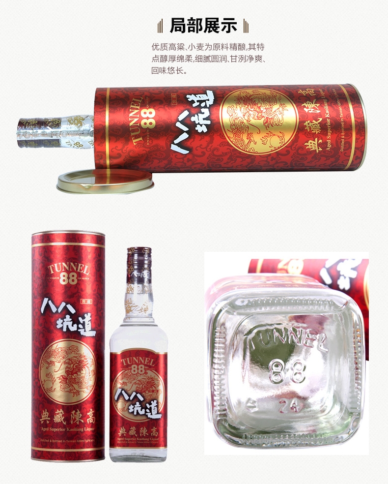 台湾八八坑道高粱酒53度典藏陈高600毫升红色圆桶纯粮食白酒沈阳    53度典藏八八坑道陈高高粱酒600毫升红色圆桶   台湾八八坑道53度典藏陈高酒批发