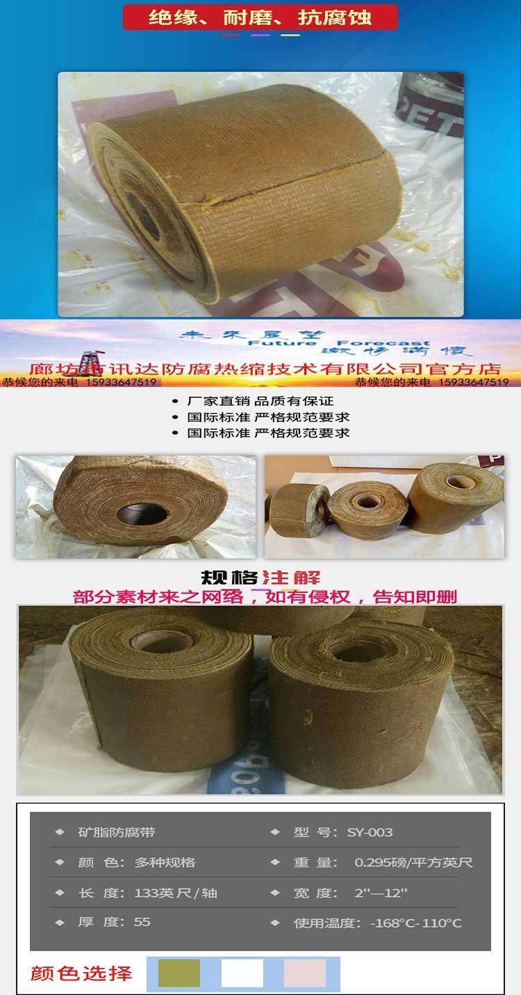 该矿酯防腐胶带也称:PETRO-Tape、IMPA812473船用防腐带、牛油防腐胶带,该胶带性能组成稳定,不固化、不硬化、不开裂,适应温度变化范围大的工件的热胀冷缩,有优异的可塑性和柔韧性,不含有任何挥发物,对人体和环境无任何毒害。适用于任何规则和不规则形状的金属管道和管件、法兰、阀门的防腐蚀工作。