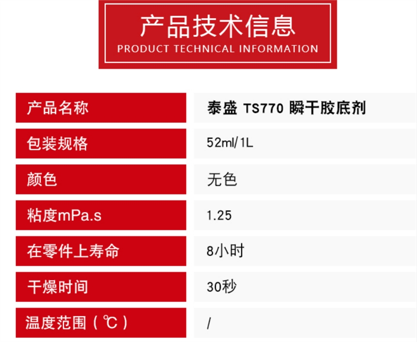 泰盛TS770瞬干胶底剂 50ML/1L促进剂 改善表面活性加快固化速度