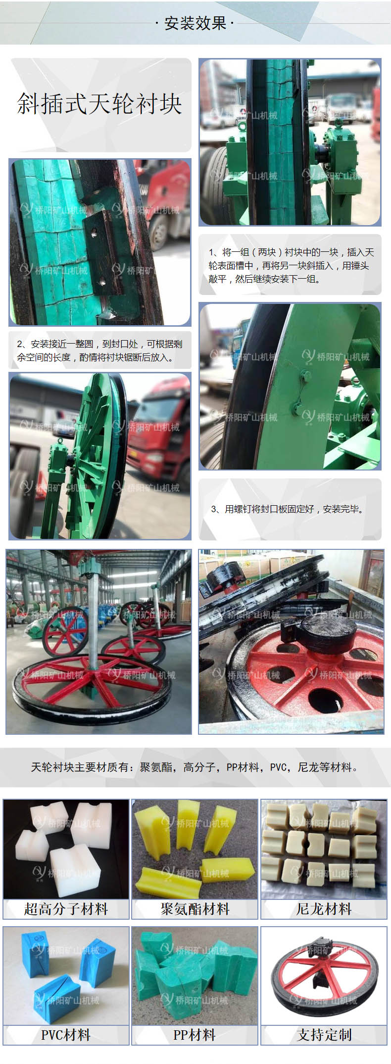 PVC天轮衬块 引导钢丝绳转向