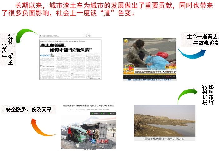渣士车辆管理工作复杂,难度大。现阶段,管理部门无法控制渣土车辆是否在规定时间、规定线路上行驶,不能监控到渣土车辆是否随意倾倒建筑垃圾等违法行为,