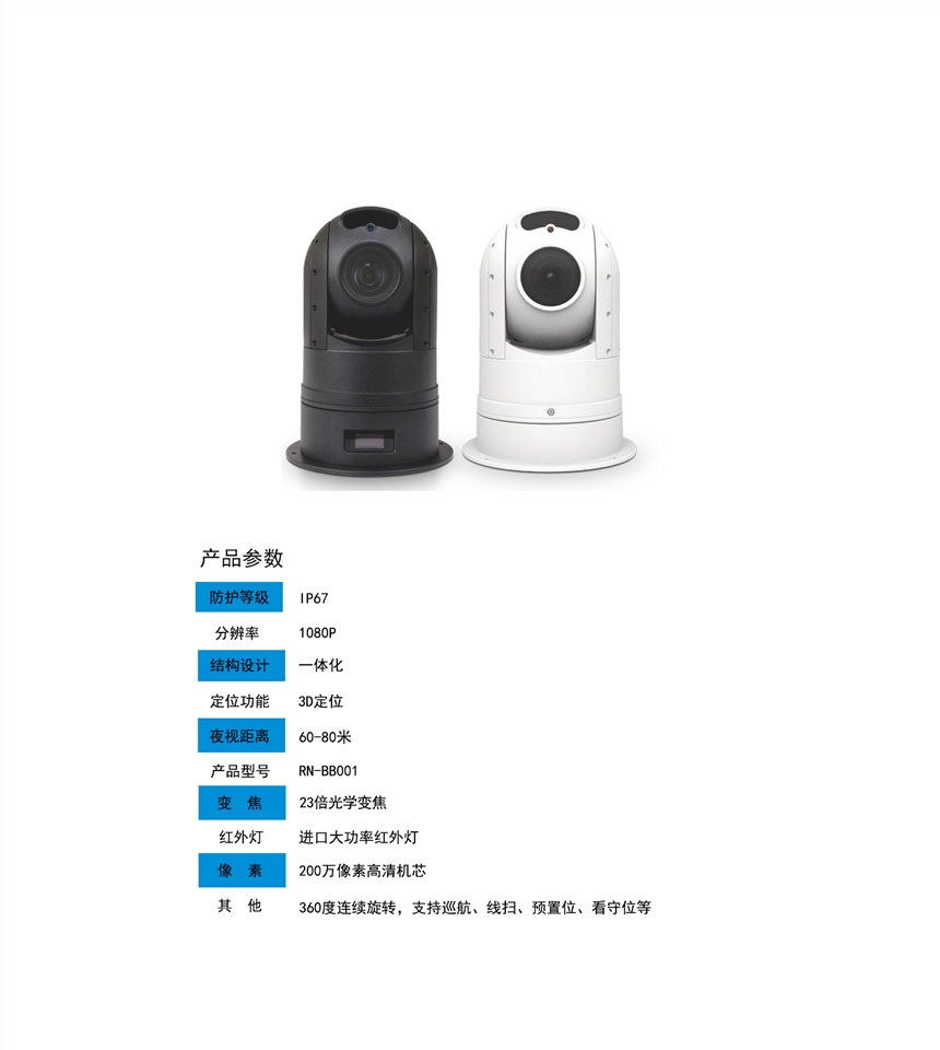 可进行360度连续旋转,支持巡航、线扫、预置位、看守位等