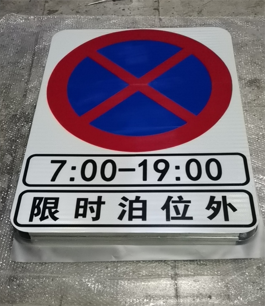 材质特点:1.00-3.00mm铝板厚度,背面安装铝槽(供固定时使用),正面贴反光膜。夜晚反光效果。