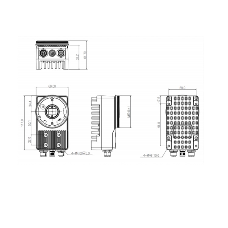 SI5501CG002 华睿科技X86系列500万像素1英寸CMOS全局快门35fps内嵌MVP算法平台软件千兆工业以太网接口彩色智能相机 结构尺寸图(mm):