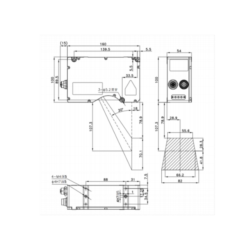 DL3080B 华睿科技高精度三维测量千兆以太网口传输内嵌航空插头3D激光轮廓传感器 3D工业检测相机 结构尺寸图(mm):