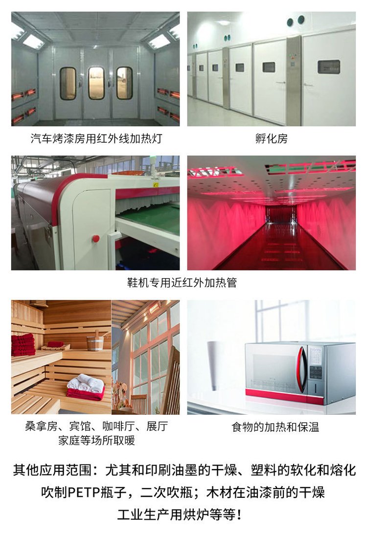 梦特罗卤素管是一种密封式的发光发热管,内充卤族元素,能有效保证电热丝寿命。主要用于烤漆、烘箱、光波炉、取暖器、微波炉、消毒柜、电热茶壶、咖啡壶、饮水机等。无毒、无公害、没有污染,是新型的环保产品。灯管表面能够承受大约1200℃高温。比传统电热丝节能30左右。其特点是功率低、寿命长、省时省电。