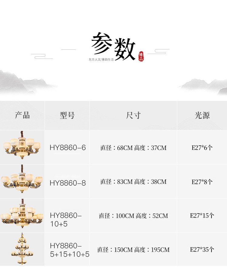 吊灯类型 | 全铜玉石吊灯 | ||