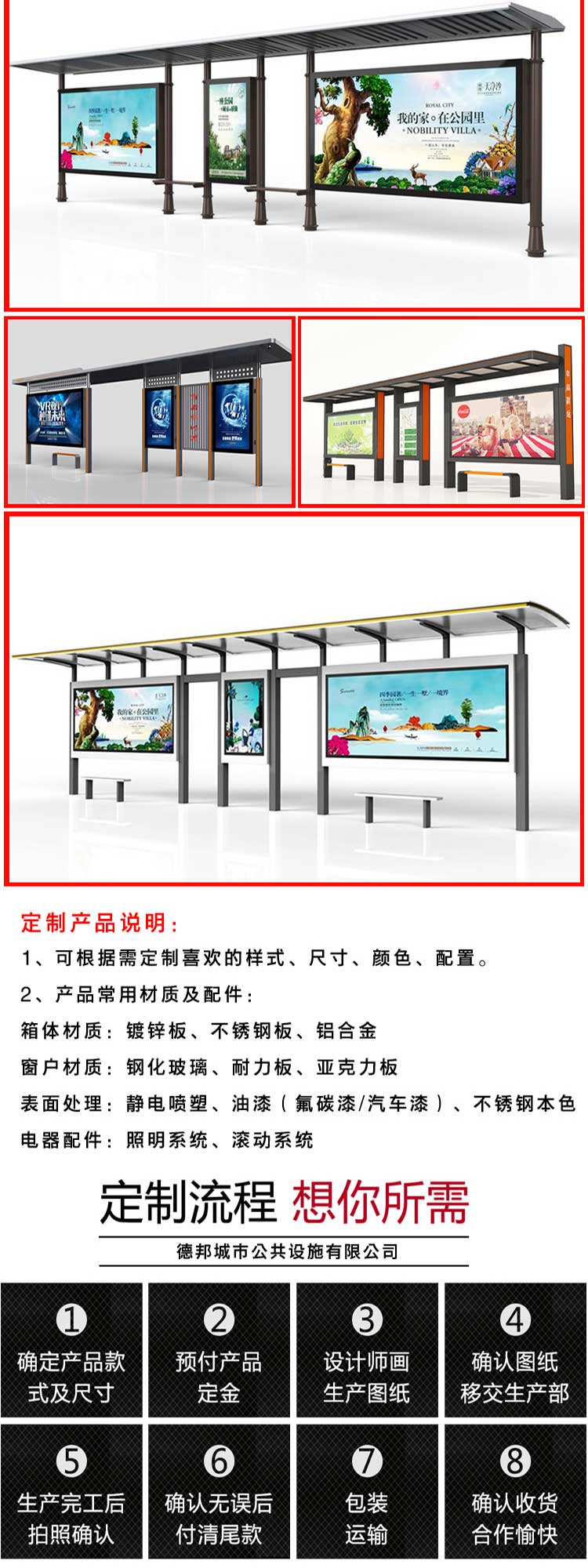 顶棚 | 阳光板/耐力板/钢化玻璃/镀锌板 | ||