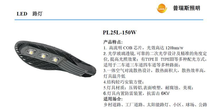 特色服务 | 厂价直销高光效高流明光学多角度配光高效散热抗雷击LED路灯150W | ||