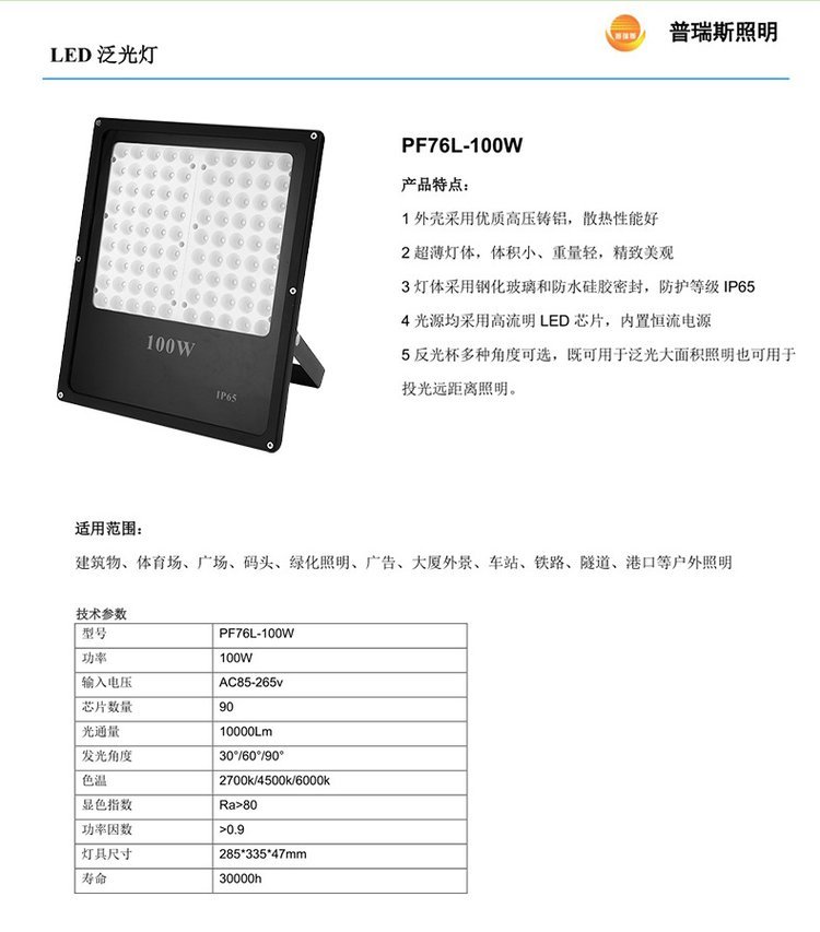 订货号PF76L-30W/50W/100W/150W/200W