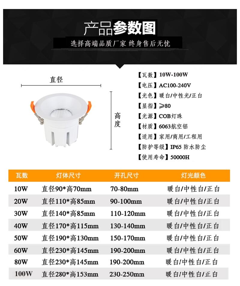 40W嵌入式射灯 开孔150mm