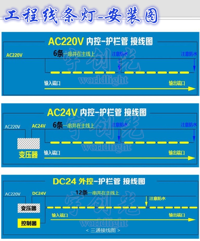 【适用范围】 建筑装饰照明、勾勒建筑轮廓、单体建筑、历史建筑群外墙照明、大楼内光外透照明、室内局部照明、绿化景观照明、酒吧、舞厅娱乐场所气氛照明、机场亮化,楼体亮化,桥梁亮化,户外工程景观亮化等
