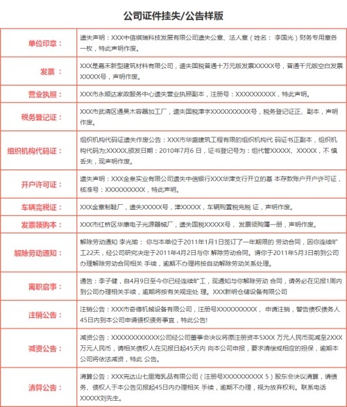 遗失声明登报要求:
