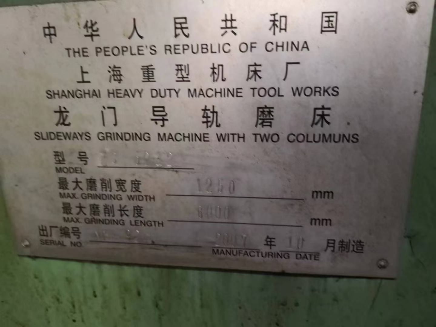 售:上海6米龙门导轨磨床型号:MS5212,工作台1200[表情]6000磨削宽度1.25米龙门过宽1.35米磨削长度6米年代2007年,