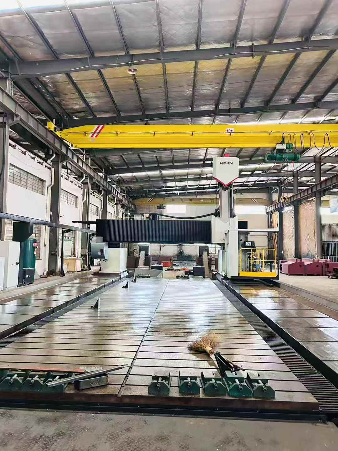 海天动柱龙门五面加工中心型号GZU50M×150,X轴行程15000mmY轴行程5400mm,Z轴行程1500mm机床重量:160吨