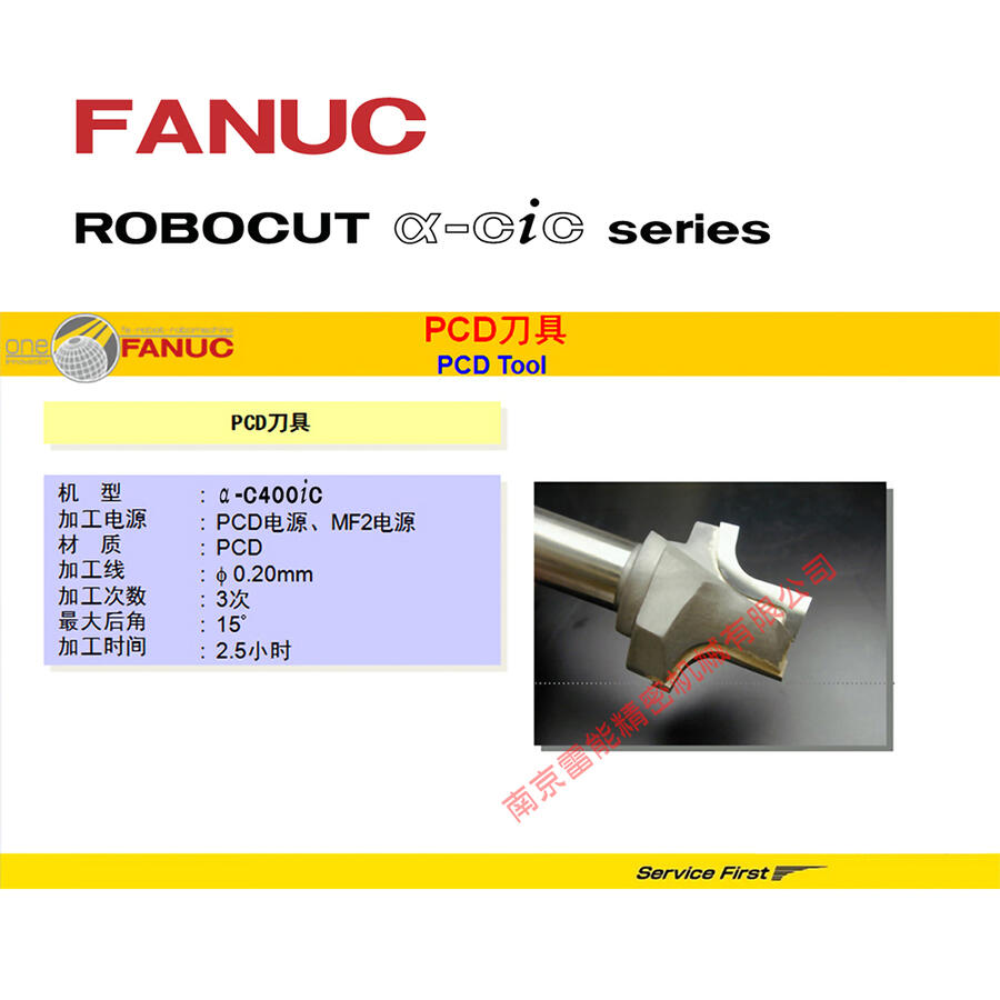 利用旋转轴实现高精度加工、利用接触探头实现刀面定位、利用PCD专用电源实现高品质加工;发那科慢走丝线切割搭载了PCD专用电源的,能够对应各种PCD刀具材料。利用探头对PCD表面形状测定,实现高精度、高品质加工。由于加工液为水,所以不需要担心火灾情况,与油加工机相比实现更高速更安全加工。