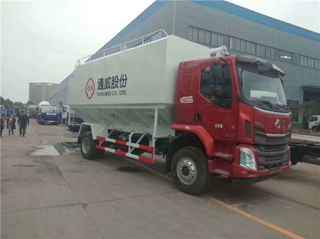 散装饲料车容积有12方、20方、22方、28方、30方、40方等多个型号选择,有电动绞龙卸料和液压绞龙卸料,装有380伏市电控制系统,可以加装车载发电机。常用常见可上户的车型底盘有:东风大多利卡,东风天锦,陕汽轩德,东风天锦XR,柳汽乘龙,解放J6,东风天龙。根据容积选择:单桥,小三轴,前四后八。