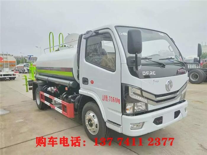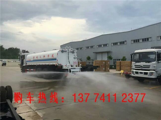 洒水车罐体材质为Q235国标碳钢,厚度为4MM,带大功率专用洒水泵,前冲、侧喷、后洒,带后工作平台和洒水高炮,高位花洒。