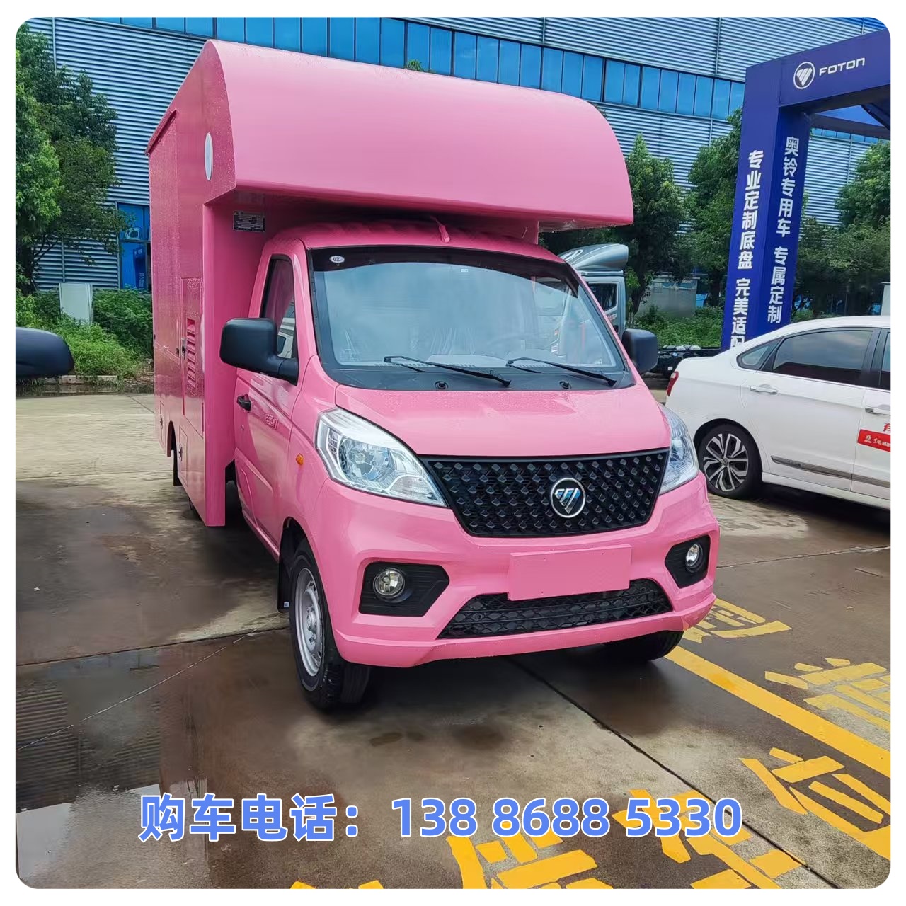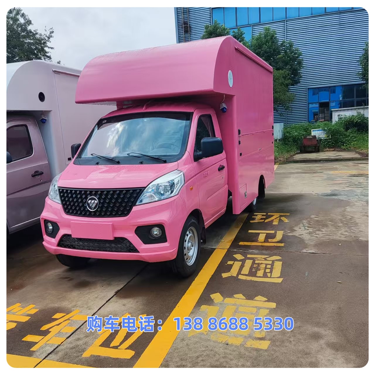 货厢顶部封闭不可开启;专用装置为售货台架,主要用于流动售货;发动机/油耗值(L/100km)对应为:DAM16KR/8.7;ABS系统控制方式是双参数控制,ABS系统控制器型号是YF9,ABS系统控制器生产企业是武汉元丰汽车电控系统有限公司,ABS系统控制器型号YC-ABS-L,ABS系统控制器生产厂家天津英创汇智汽车技术有限公司;选装限速装置,限速80km/h;选装直接供电ETC车载装置;整备质量包含备胎、售货台架、随车工具;随底盘选装新款前格栅,选装带昼行灯,选装不带前雾灯;厢体侧板、顶板、前板及后板材料为彩钢板+挤塑板,厚度为45mm,底板材质为花纹板,厚度1.5mm,厢体重量(含售货设备)790kg;选装外观样式及售货台架布置.