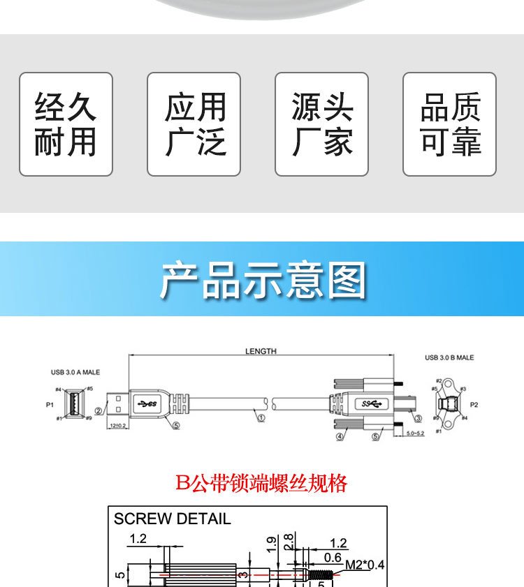 型号 | USB3.0数据线A公转B公方口 |