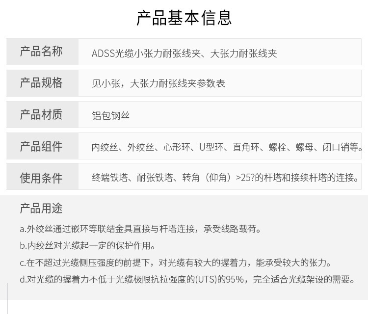 产品用途 | ADSS OPGW OPPC终端线缆紧固 | ||