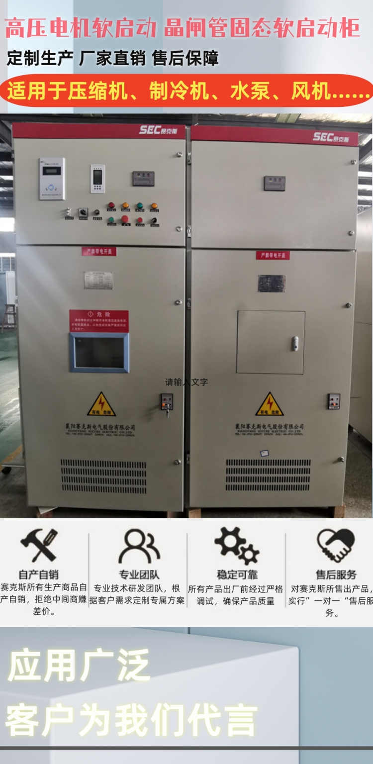 SPHMV高压固态软启动柜是一种高压电机起动及保护设备,该装置采用多个可控硅串并连而成,可满足不同的电流及电压要求。其广泛应用于额定电压 3000—15000V 的水利泵站、建材、化工、冶金钢铁、造纸、环保等行业。能很好地与冰机、水泵、风机、压缩机、粉碎机、搅拌机、磨浆机、皮带机等各种机电设备配套使用。
