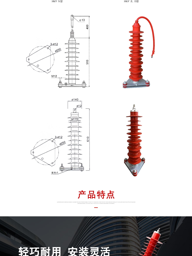 4.独特配方的氧化锌电阻片,高容量,低泄露。