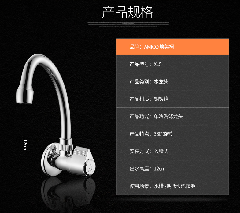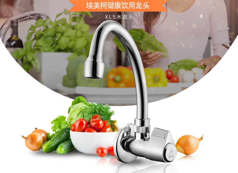 埃美柯全铜单冷厨房菜盆水龙头XL6 可360度旋转单柄单控洗涤水嘴