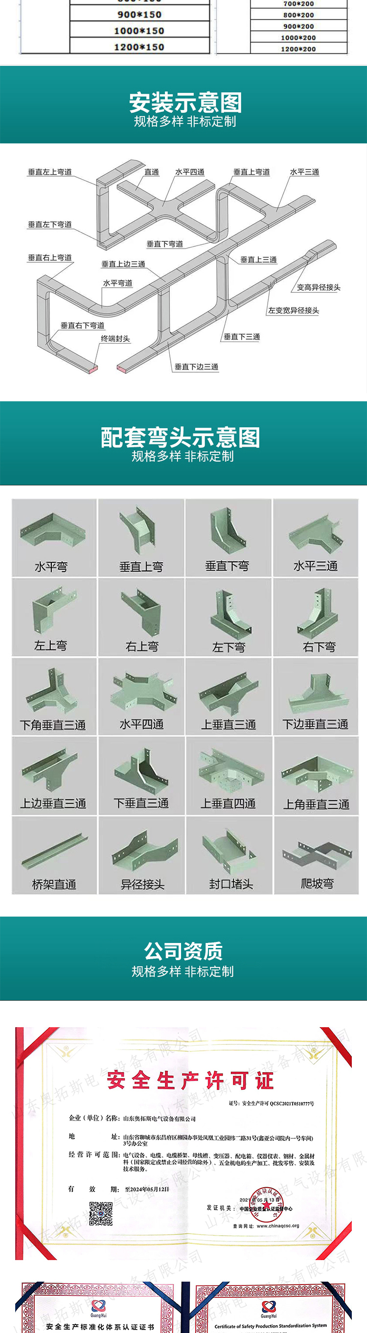 型号 | 槽式电缆桥架、托盘式电缆桥架、梯式电缆桥架 | ||