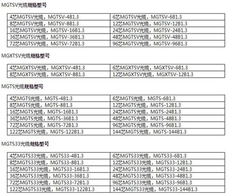 型号 | 矿用光缆 | ||