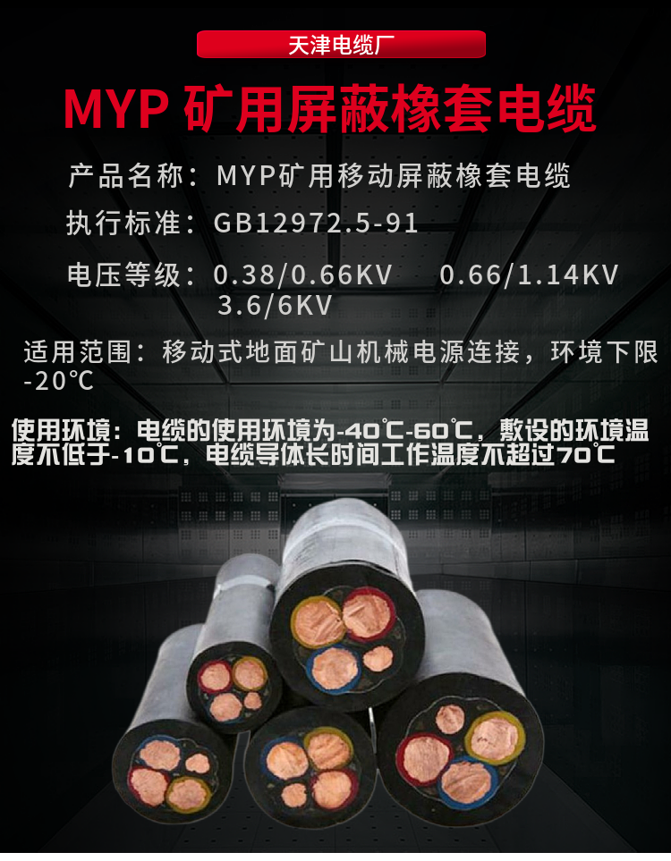 矿用移动橡套软电缆MYP 采煤机移动线 MCP 380/660v 纯国标屏蔽线 用途 | 抗磨抗屏蔽电缆 | ||