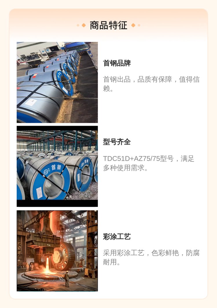 首钢PVDF彩涂卷TDC51D AZ75/75彩钢卷多种规格可选 品牌 | 首钢 | ||