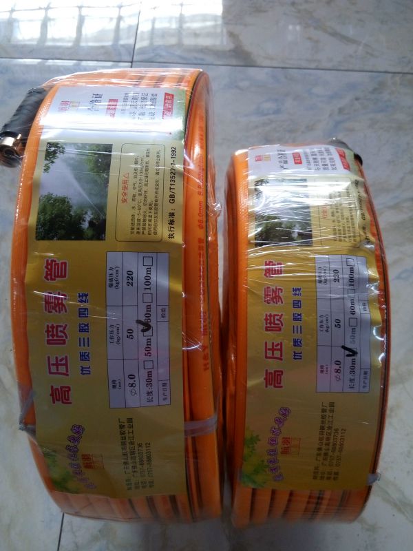 产品采用优质pvc及橡胶合成材料制成,具有质轻、弹性好、抗老化、耐酸碱等特点,外观光滑,一年四季保持柔软;该管使用寿命高于传统橡胶管 2-3倍,是替代传统橡胶管的新产品!,加强型壁厚,双层涤纶工业长丝紧密编织,三层胶质高温强力融合,工作压力60kg,爆破压力达200kg。